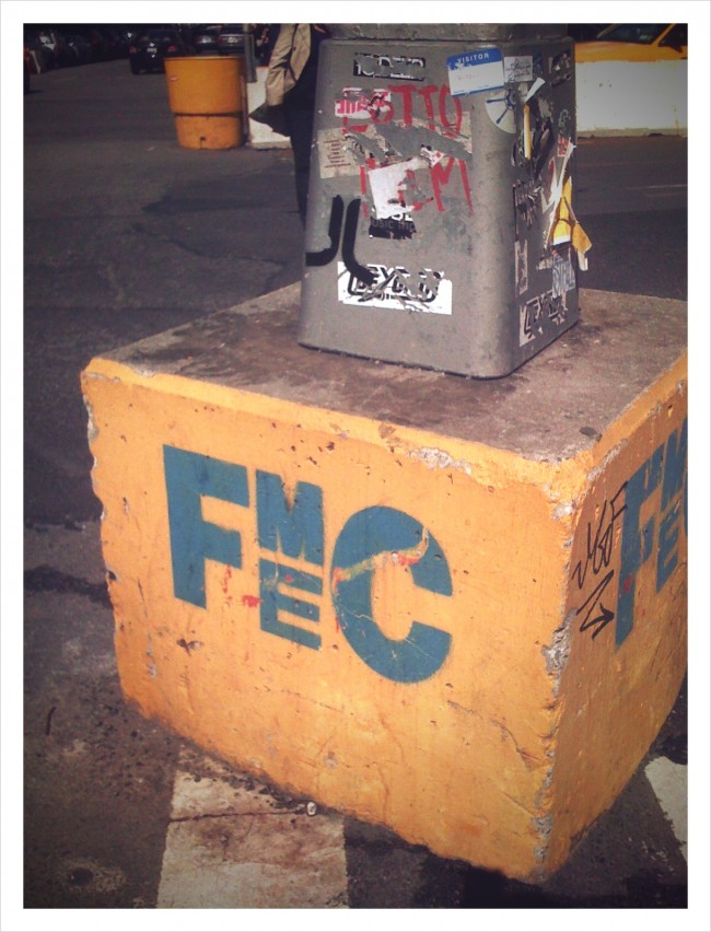 Hope you had a nice weekend… I had a shopping (for Japan!) and early dinner day with my friend in the city yesterday :) and while I was having fun, I found this sprayed letters “F M E C” everywhere on Houston Street. Blue on yellow. It stood out to me so I snapped a couple photos…